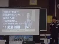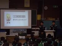 4校時には、室内で選手お二人から小学生時代の話や、夢を実現するために必要な心構えなどについて、子供たちに寄り添った視点でお話しいただきました。子供たちは、そのお話に真剣に耳を傾けていました。少し先の未来を思い描きながら、自分の夢に向かってどんな一歩を踏み出せばよいのか、それぞれが考えるきっかけとなったのではないでしょうか。
