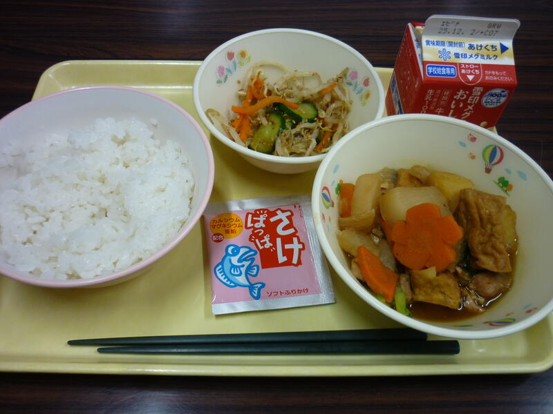 ご飯 牛乳 そぼろ丼 いものこ汁
