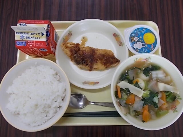 ご飯 牛乳 魚の香味揚げ 夏野菜の味噌汁 ふりかけ