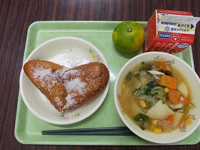 シュガー揚げパン 牛乳 どさんこ汁 みかん