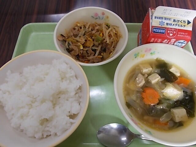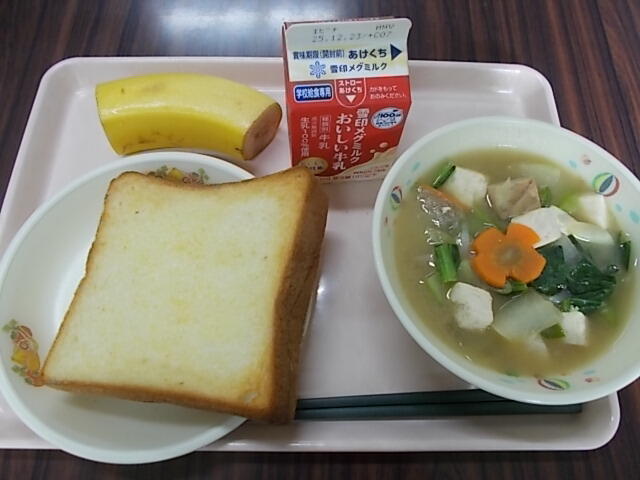 コッペパン 牛乳 ポトフ カレー味のサラダ ブルーベリージャム