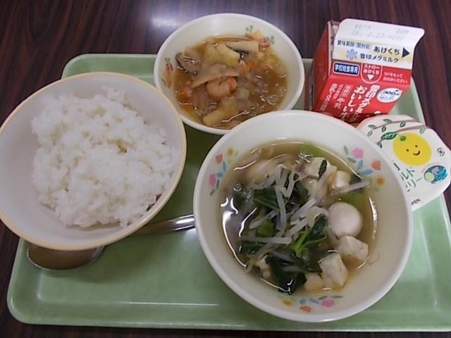 (ごはん) 牛乳 中華丼 青菜のスープ 湘南ゴールドデリー
