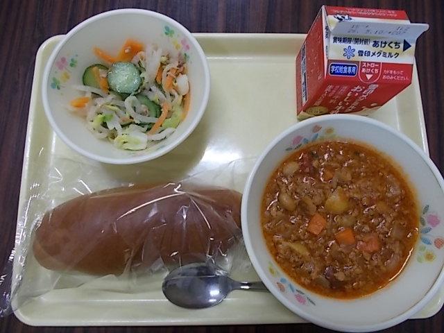 くろパン 牛乳 チリコンカン ツナサラダ