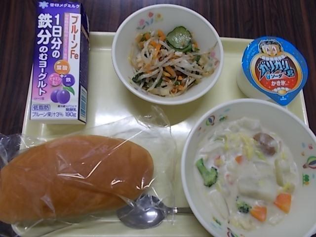 コッペパン 発酵乳 白菜のクリーム煮 かんぴょうサラダ がりがりくん(PTAより)