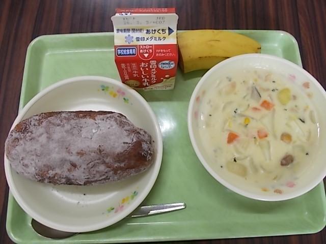 ココア揚げパン 牛乳 コーンクリームスープ バナナ