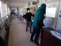 児童が「校内に不審者が侵入した場合の対処方法」を理解し、適切な行動が取れるようにすることを目的として、避難訓練を実施しました。訓練では、不審者役の教員が校内に現れたという設定で、担任の先生の指示や校内放送を受けて、児童たちは教室の扉を施錠し、机の下に隠れたり、廊下側の壁に移動して身を隠したりするなど、真剣に取り組んでいました。