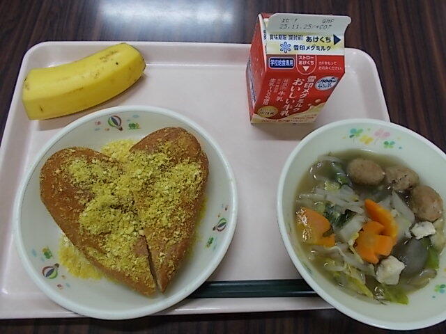 カレー揚げパン 牛乳 ちゃんこ汁 バナナ