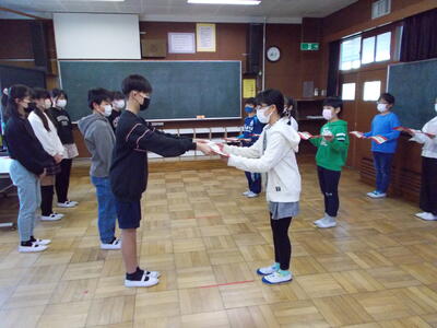 最後は一年を振り返り、学校のために頑張ったこと、自分が経験をとおし成長したことを自分の言葉で語っていました。