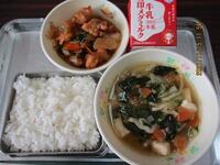【献立】ご飯・ひき肉ともやしの炒め物・ビーフンスープ・牛乳