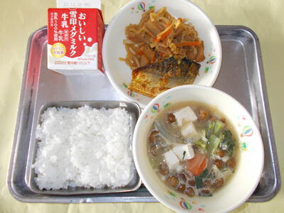 【献立】ごはん・鯖のカレー焼き・切り干し大根の炒め煮・なめこ汁・牛乳