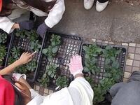 ポットの苗を中庭の畑に植え替えました。これから水やり等の世話をしっかり行い、色とりどりの綺麗なパンジーを咲かせられるといいですね。