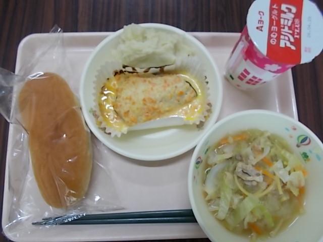 コッペパン 発酵乳 魚のみそマヨネーズ焼き マッシュポテト パスタスープ